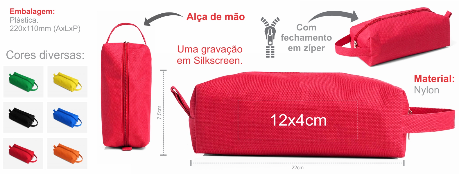 Necessaire em Nylon vermelha. Conta com fechamento em zíper e alça de mão.