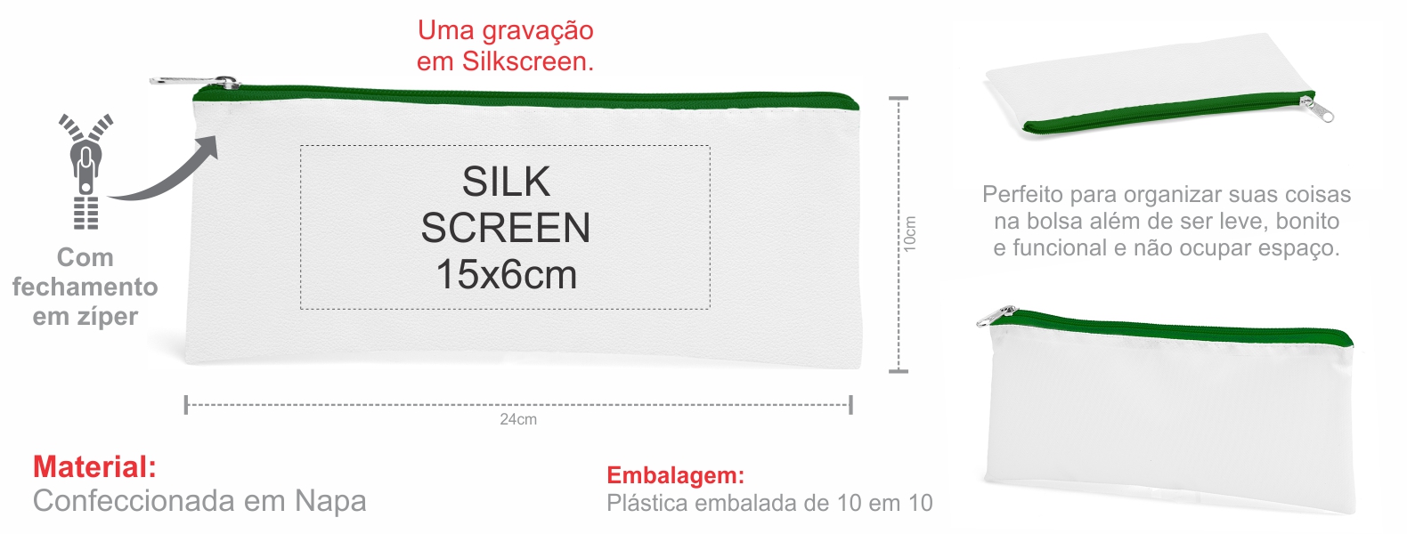 Necessaire branca confeccionada em Napa. Conta com fechamento em zíper verde.