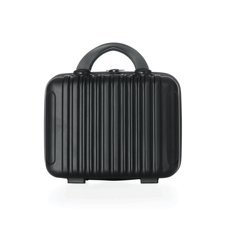 Frasqueira confeccionada em ABS rígido preto. Conta com fechamento em zíper, alça de mão, alça carona, parte interna com forro e divisória com zíper.
