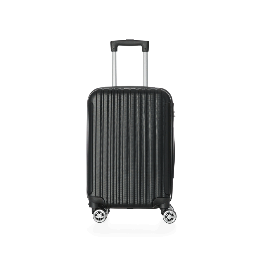 Mala de viagem em ABS rígido preto. Conta com rodinhas 360º, fechamento em zíper e cadeado com senha, alça retrátil de alumínio e duas alças de mão. Parte interna com forro e divisória com zíper. Mala dentro do padrão da ANAC, para viajar a bordo no avião. Acompanha saco de TNT para proteção.